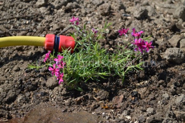 Садовые флоксы относятся к категории очень влаголюбивых декоративных культур, но сильное переувлажнение может стать причиной загнивания и даже гибели флокса. Самым комфортным для растения является способ капельного орошения, при котором минимизируется риск повреждения культуры мучнистой росой. Особенно важно выполнять оросительные мероприятия в жаркие и сухие дни.