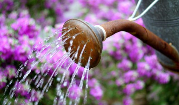 Поливать нужно на всю глубину корня, до 1,5 -2 ведер воды на 1 кв. м. Вода должна быть прогретой на солнце теплой, бочковой, чистой, следите, чтобы в ней не было много минеральных солей. Соли — вредны для флоксов.