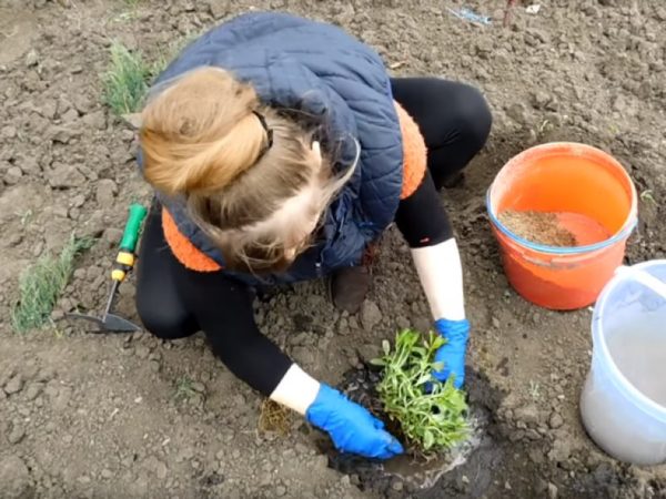 Корневая система перед посадкой также предварительно укорачивается до длины в 12-15 см. Если высаживаются контейнерные растения, то посадка выполняется вместе с земляным комом, а закончившая цветение верхушечная часть обрезается. Для высаживания предварительно нужно подготовить участок, перекопав его и удалив всю сорную растительность. Посадка выполняется в заранее подготовленные и пролитые водой посадочные ямы, в которые предварительно засыпается немного просеянной древесной золы и перегноя, а также примерно одна столовая ложка фосфорных удобрений.
