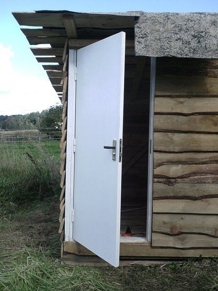 Двери поставил самые обычные, фанерные. Обшил их снаружи листовым железом. Установил внутренний замок, который не подведет в морозы.