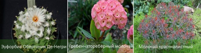 В активе садовой эуфорбии существует большое многообразие различных видов: с почечными чешуйками, колючками, цветовыми бутонами или жестким мясистым ростком. Они могут иметь гладкую, граненую или ребристую структуру стебля и листьев. Наиболее популярными и любимыми у садоводов являются молочаи: