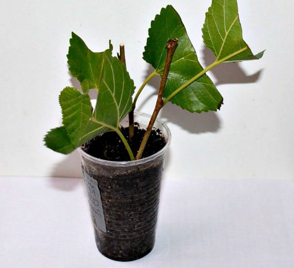 Растение нуждается в умеренном поливе, частом проветривании и подкормке минеральными удобрениями. Признаком того, что черенок укоренился станут новые побеги. Выращенные таким образом саженцы шелковицы — это 100% копии материнского растения.