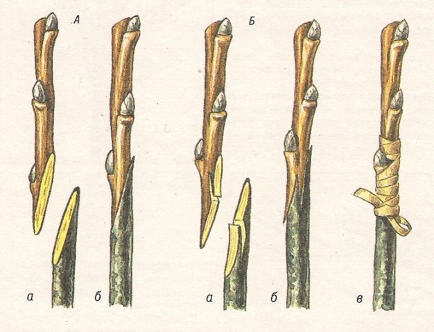 Для прививки глазком, необходимо подготовить почки с прошлогодних побегов. Для этого можно черенки заготовить с осени или же срезать их ранней весной. Окулировку проводят методом «вприклад».